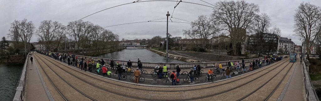 Ils sont venus prendre la pose vers 14h30 sur ce qu’il considère comme un "symbole d’une conquête pour la mobilité douce à Besançon", le pont de la République. À quelques semaines des élections municipales, ils ont réaffirmé l'importance d'une politique cyclable ambitieuse, estimant que "le vélo profite à toutes et tous", rappellent les associations dans leur communiqué de presse conjoint.