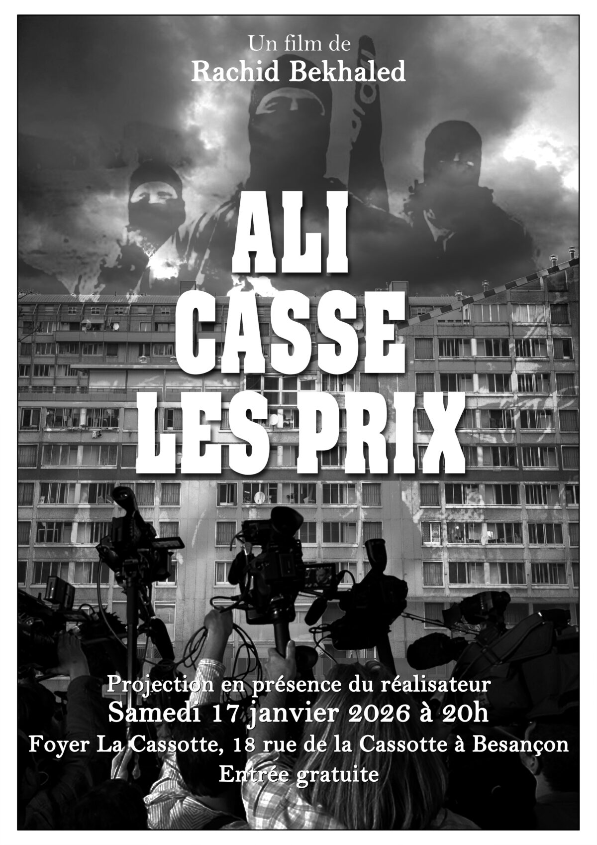 La projection sera suivie de la projection du court-métrage intitulé Ali casse les prix, en présence de son réalisateur Rachid Benkhaled. Le film évoque la radicalisation d’un jeune issu du quartier de Planoise. Ali casse les prix est l’adaptation du livre du même nom de Gilles Bornais dont le réalisateur a acheté les droits.