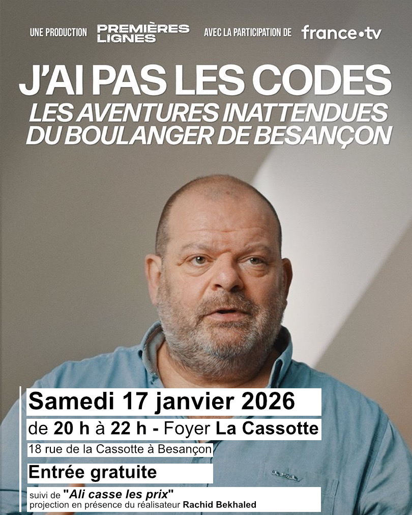 Les films "J’ai pas les codes" et "Ali casse les prix", tous deux tournés à Besançon, seront projetés le samedi 17 janvier 2026 lors d’une soirée de deux heures au foyer de La Cassotte.