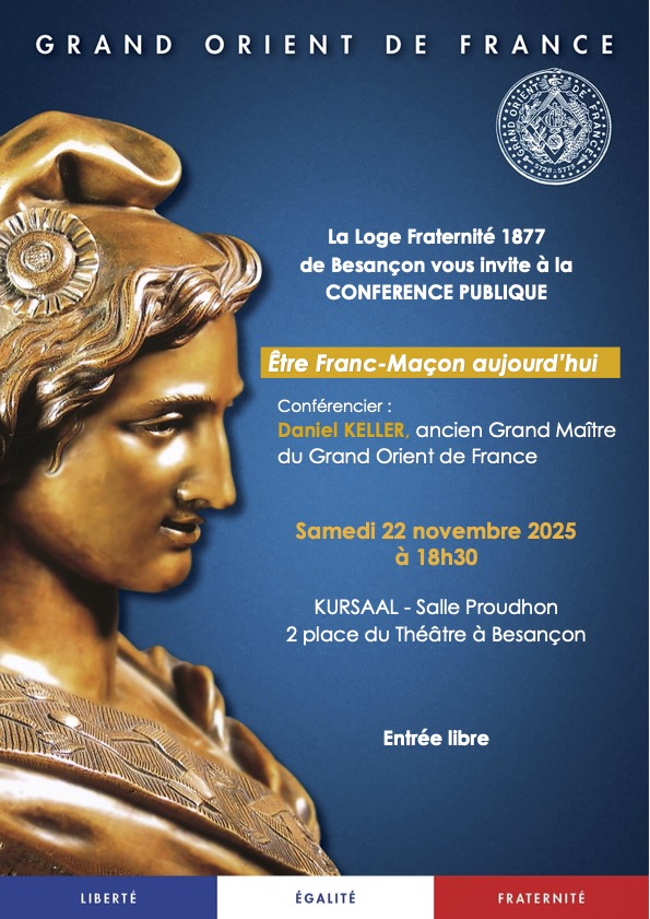 La loge Fraternité 1877 de Besançon organise une conférence samedi 22 novembre 2025 en présence de Daniel Keller, ancien Grand maître du Grand orient de France et de Henri Combi, franc-maçon bisontin.