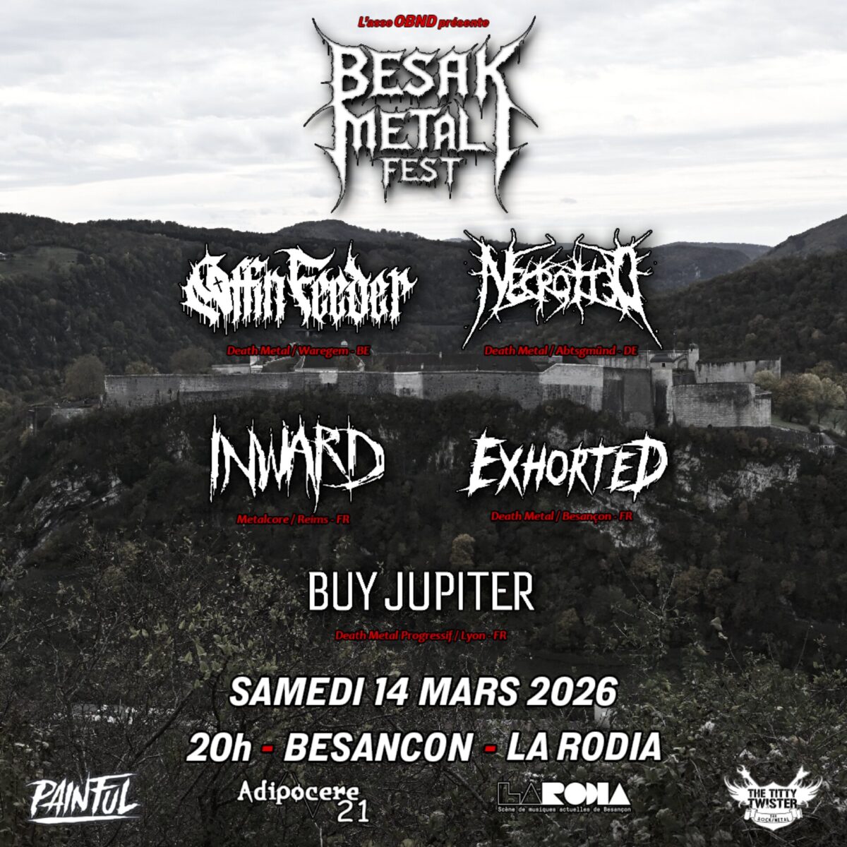 Le Besak Metal Fest revient pour sa 4? édition le samedi 14 mars 2026 à La Rodia à Besançon.?Ce rendez-vous désormais bien installé dans le paysage des musiques extrêmes en Franche-Comté proposera une affiche mêlant scène européenne reconnue et formations françaises en pleine ascension.