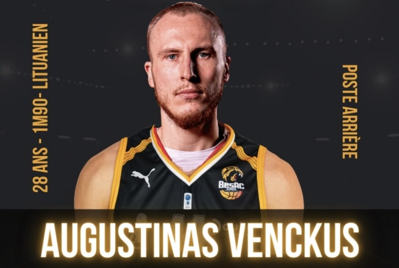 Venckus était jusqu’alors sous contrat pour le club de Pro B lituanienne, Alytaus Alytus où il affiche 14,9 pts de moyenne en 17 matches (32 % à 3 pts).Laurent Kleefstra se montre très satisfait de cette pioche : "C'est vraiment actuellement le joueur qu'il nous faut, car on manque d'adresse et on manque de scoring. Augustinas, c'est un vrai bras ! Il s'est de plus immédiatement intéressé à notre projet qu'il veut soutenir. Il a regardé des matches et se montre enthousiaste à l'idée de retrouver la France et la N1" .