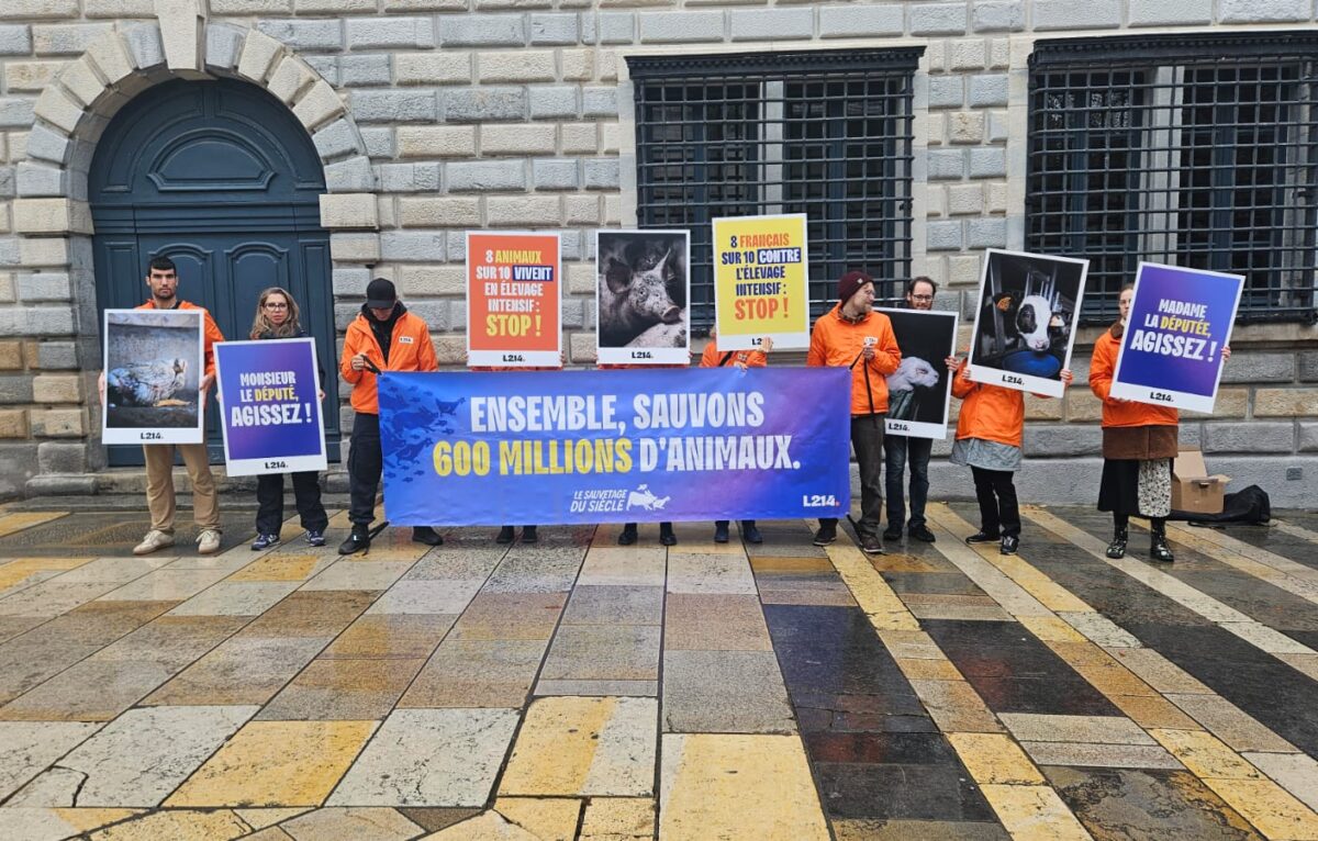 Les bénévoles ont invité les citoyennes et citoyens à interpeller leurs députés en remplissant des cartes postales-pétitions leur demandant de s'engager contre l'élevage intensif. Cette campagne lancée en juin a pour objectif de réduire de moitié le nombre d'animaux tués pour l'alimentation d'ici 2030.