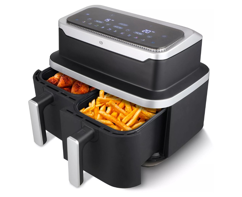 Craquez pour la friteuse sans huile ESSENTIELB EAF2, l’alliée idéale pour des repas gourmands et équilibrés. Avec sa grande capacité de 8 litres répartie en deux bacs de 4 L, vous pouvez cuire simultanément deux plats différents : parfait pour régaler toute la famille ! Puissante (2600 W) et polyvalente, elle propose 10 programmes prédéfinis et un thermostat réglable de 50°C à 200°C pour s’adapter à toutes vos envies. Sa cuve amovible facilite le nettoyage, tandis que sa technologie de cuisson sans huile réduit les graisses sans compromis sur le goût. En promotion spéciale Black Friday, c’est le moment de (re)découvrir la cuisine simple, saine et savoureuse.