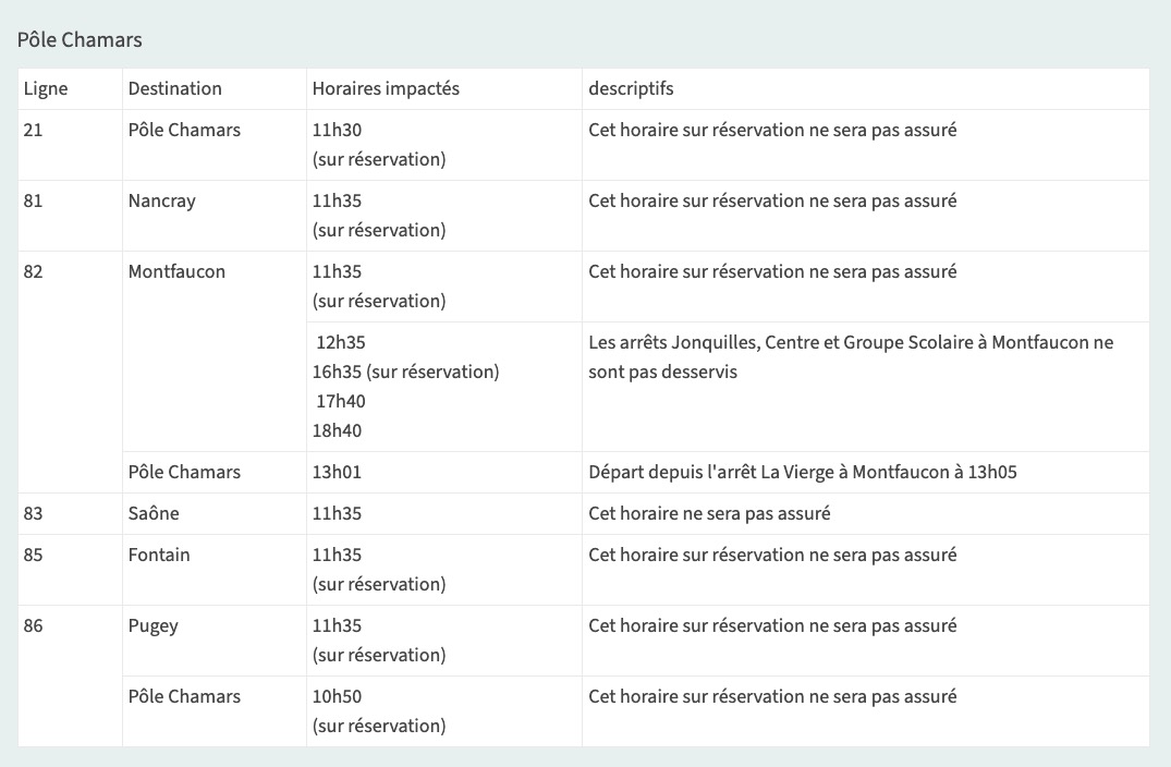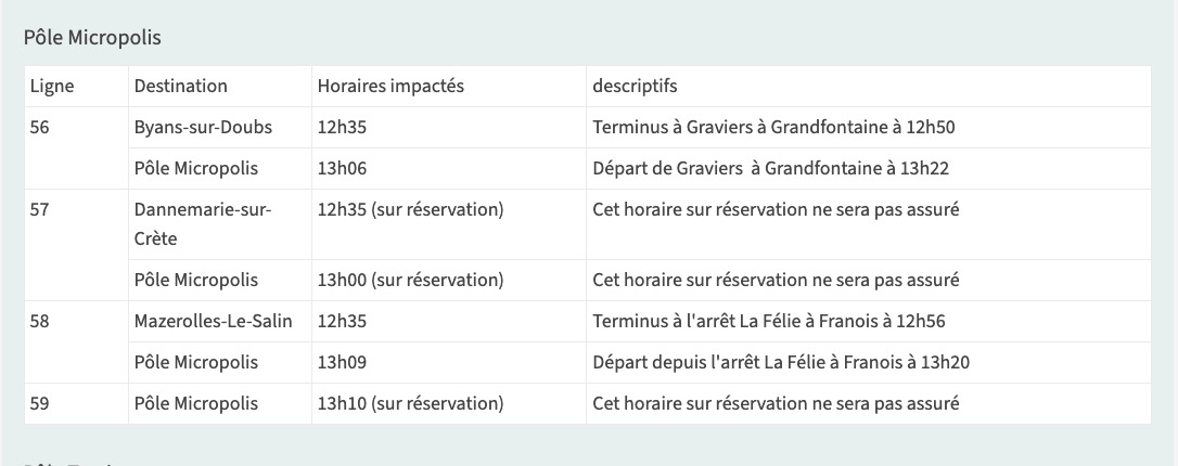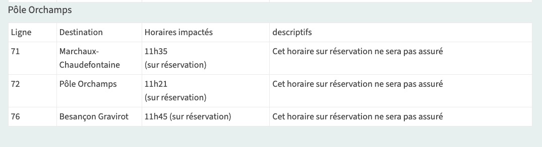 en raison de la course cycliste Classic Grand Besançon, certains services périurbains du réseau Ginko seront perturbés entre 11h et 16h (À l'exception de la ligne 82 dont les départs seront perturbés jusqu'à 19h). Des perturbations sont également à prévoir sur les lignes L4, L6, 10, 11 et Ginko Citadelle au cours de la journée.