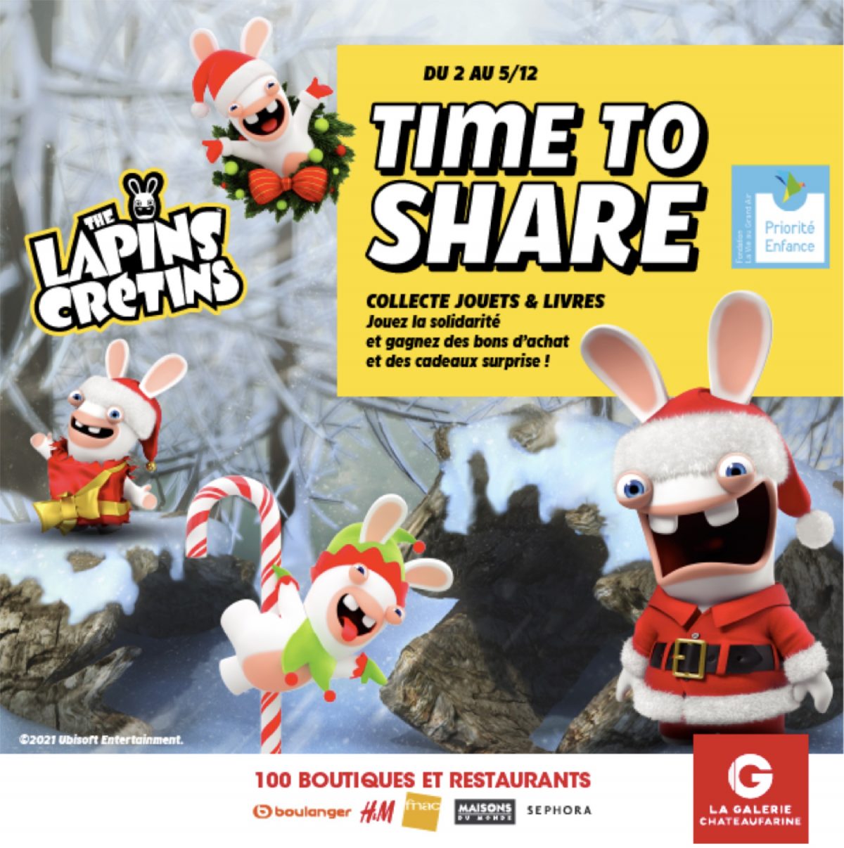 En réalisant un don, petits et grand auront accès à un jeu 100% gagnants avec les Lapins Crétins pour obtenir des bons d’achat ainsi que des cadeaux surprise.
