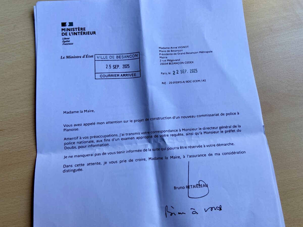 C’est en lieu et place d’où aurait dû se trouver le futur (ex ?) commissariat de Planoise que la maire de Besançon a convié la presse ce jeudi 2 octobre 2025. La raison de ce rendez-vous ? Un courrier "inadmissible" selon les mots de l’édile, reçu du ministre de l’intérieur Bruno Retailleau qui a eu le don de mettre le feu aux poudres. Lettre à la main, Anne Vignot, a lu le courrier reçu le 25 septembre dernier. Dans une dizaine de lignes à peine, le ministre remercie la maire d’avoir attiré son attention sur le projet de nouveau commissariat de police à Planoise et lui fait savoir qu’il transmettait sa correspondance au directeur général de la police nationale et au préfet du Doubs pour un "examen approprié de la requête".
