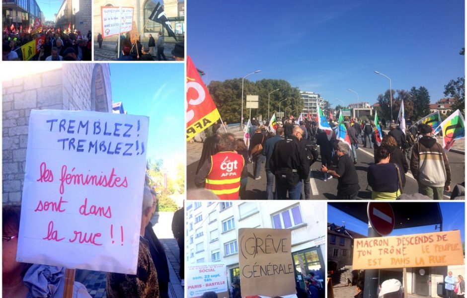 Contre la réforme du Code du travail, les syndicats (CGT, CFDT, Solidaires, UNEF, FSU, FO), la France insoumise, le NPA ou encore la Fédération anarchiste étaient en nombre dans les rues de Besançon de la place de la Révolution à l'esplanade des Droits de l'Homme en passant par l'avenue d'Helvétie, la place du 8 septembre et la préfecture.