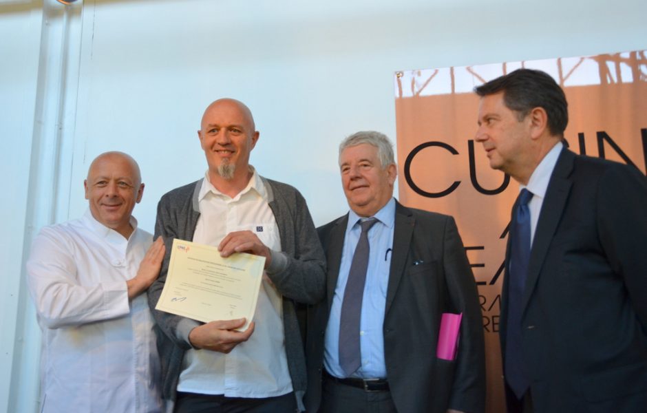 Le chef a tenu à féliciter les nouveaux diplômés et a rappelé l'objectif de l'école : "Cuisine Mode d'emploi(s) c'est l'idée de replacer la formation professionnelle dans ce qu'elle a de plus active, c'est une histoire d'hommes et de confiance et d'engagement. On fait pour apprendre. C'est pourquoi nous avons décidé de former les personnes de manière qualitative et au plus vite. Soit 12 semaine pour sortir au statut de commis de cuisine".