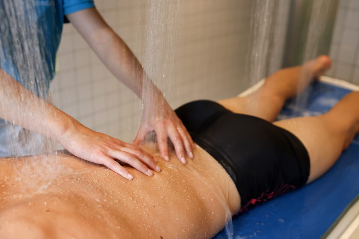 - Bain salé, massage sous eau salée, application de boue, jets massants...