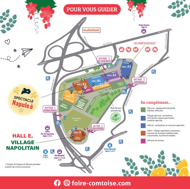 - Accès par toutes les entrées (sauf : n°2 St Ferjeux et n°3 Mouras, fermées à 21h en nocturne).