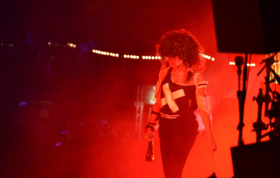 Le groupe d'électro rock français Shaka Ponk, de retour aux "Eurocks" après un passage tumultueux en 2012, présentait son nouvel album "The White Pixel Ape" dans un nouveau show ultra-visuel, époustouflant. Le spectacle a commencé avec une délicate violoncelliste, avant de laisser place au flot énergique de la chanteuse Samaha, coupe afro et t-shirt de soutien aux intermittents de rigueur, et son acolyte Frah, primate bondissant à l'énergie démentielle.