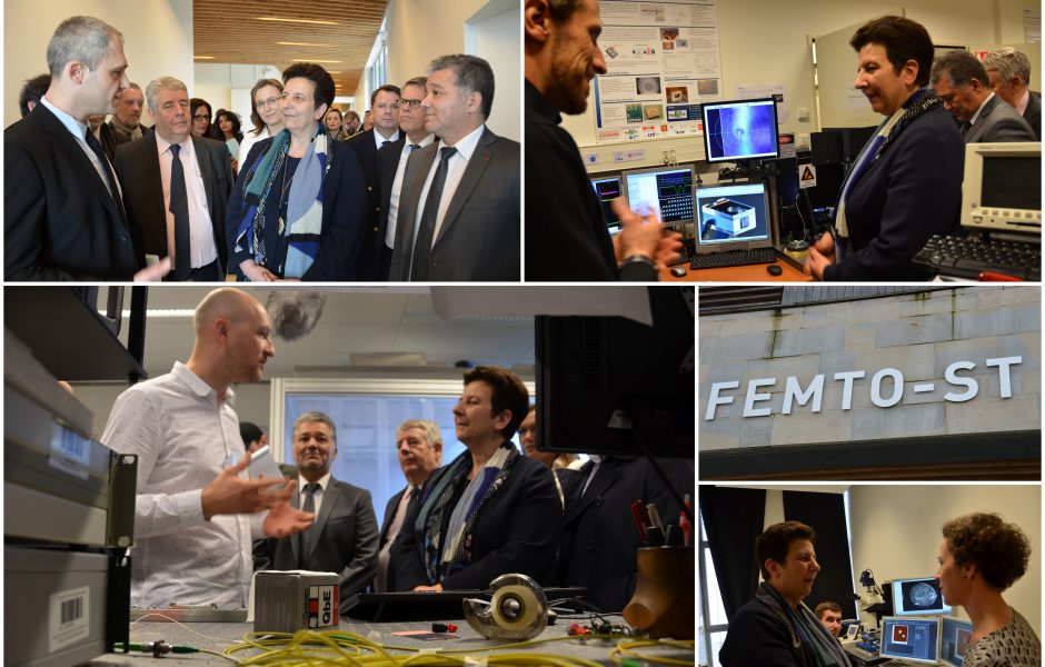 Après un déjeuner avec des élus et des acteurs incontournables de l'université, Frédérique Vidal a été accueillie vers 14h30 par Laurent Larger, le directeur de l'institut de Femto-ST. Une visite d'une heure au sein de l'atelier de découpage polissage puis de celui de mécanique. La ministre a pu échanger avec des chercheurs autour des biopuces d'analyse de nanoparticules biologiques, de micro-cellules pour micro horloge atomique ou de l'opto acoustique dans les nanofibres. Autant de sujets complexes, mais qui selon la ministre, peuvent et doivent trouver des applications au sein de la société. Le fameux transfert technologique.