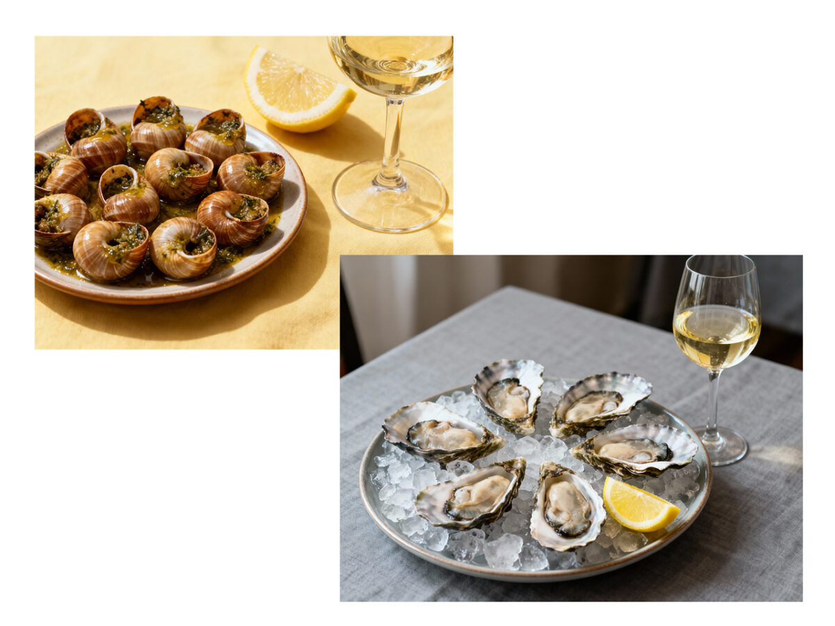 L’assiette d’huitres, ou la douzaine d’escargots, se prêtent aussi bien à une décision coup de cœur qu’à un rendez-vous pris à l’avance. Dans les deux cas, il ne vous restera plus qu’à choisir entre deux vins blancs et deux champagnes inscrits à la carte du bar à huitres.