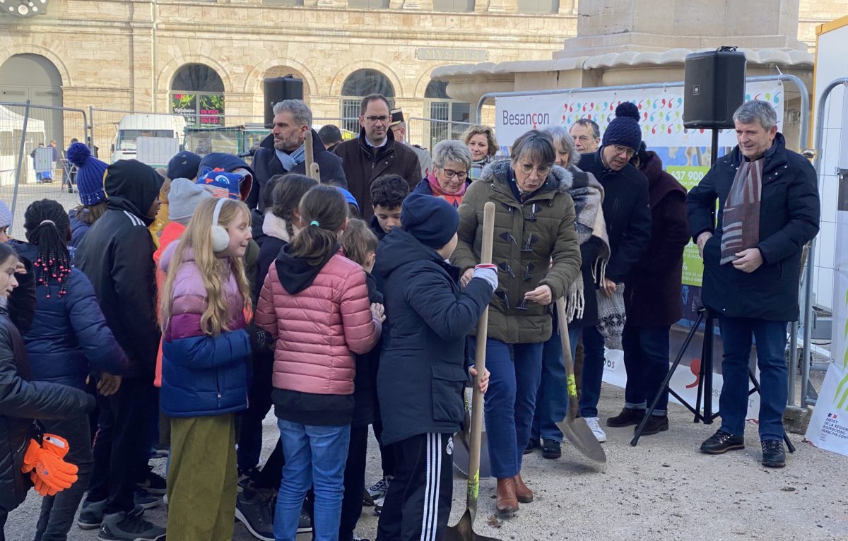 Lors de cette première plantation, une dizaine d’élèves en CM1 et CM2 de l’école d’Helvétie à Besançon a assisté au discours de la maire de Besançon avant de participer à la plantation de l’arbre. ”Ce sont eux qui vont hériter de ce que nous faisons aujourd’hui, il est urgent qu’on adapte notre territoire au changement climatique, chacun doit prendre sa part”, a indiqué Anne Vignot avant de se tourner vers les jeunes et d’affirmer : ”On vous doit beaucoup de choses, on doit vous transmettre une planète des jours heureux (…) cet arbre vous est dédié, c’est pour vous qu’on fait ça.”