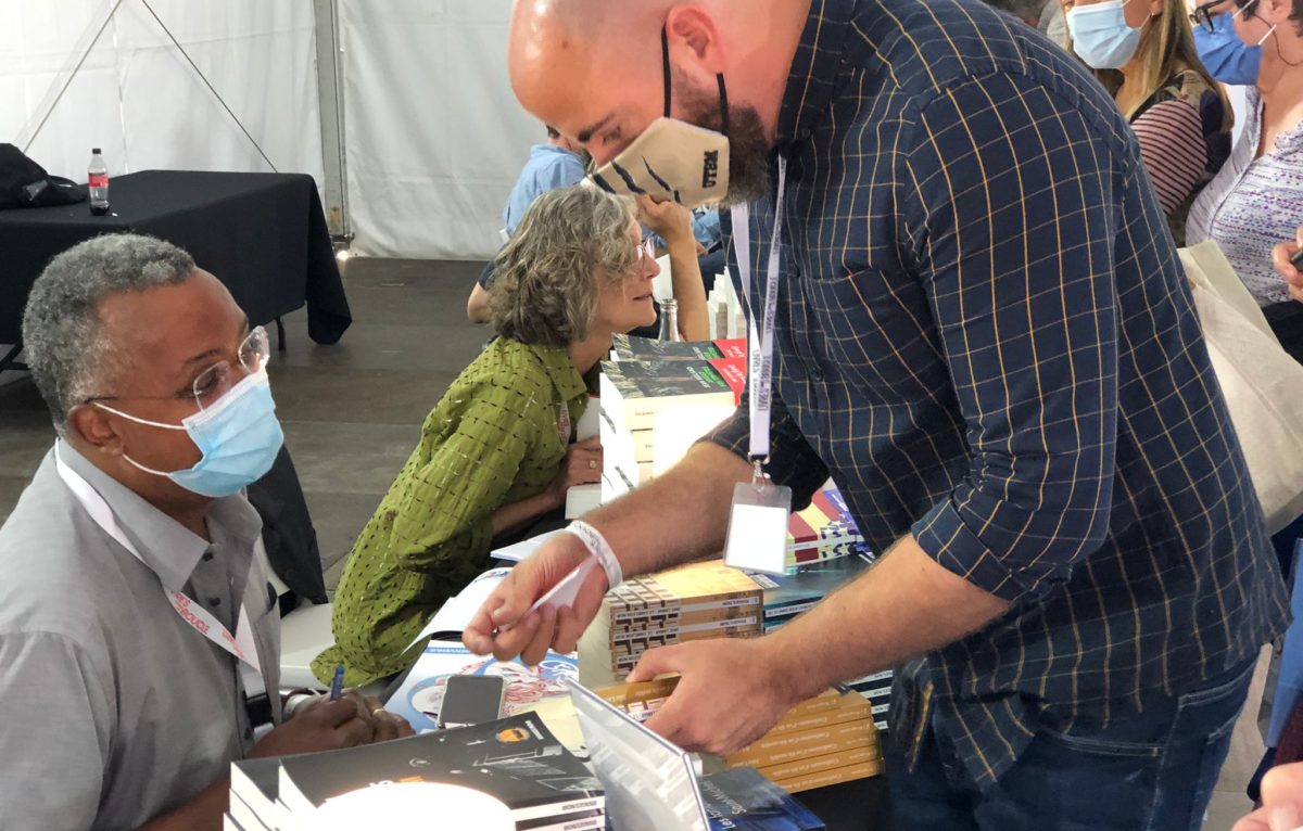 La présidente d'honneur du festival Cécile Coulon a également pris la parole pour inaugurer cette nouvelle édition. "Je suis très contente que l'on m'ait proposé cette présidence et particulièrement cette année pour plusieurs raison : la première c'est parce que ça fait 2 ans que les auteurs ne travaillent pas, c'est-à-dire ne peuvent plus faire de festival, de rencontres, et perdre la moitié de leur salaire... donc de pouvoir reprendre, une vie culturelle, une vie sociale et une vie professionnelle ça aère tout le monde !"