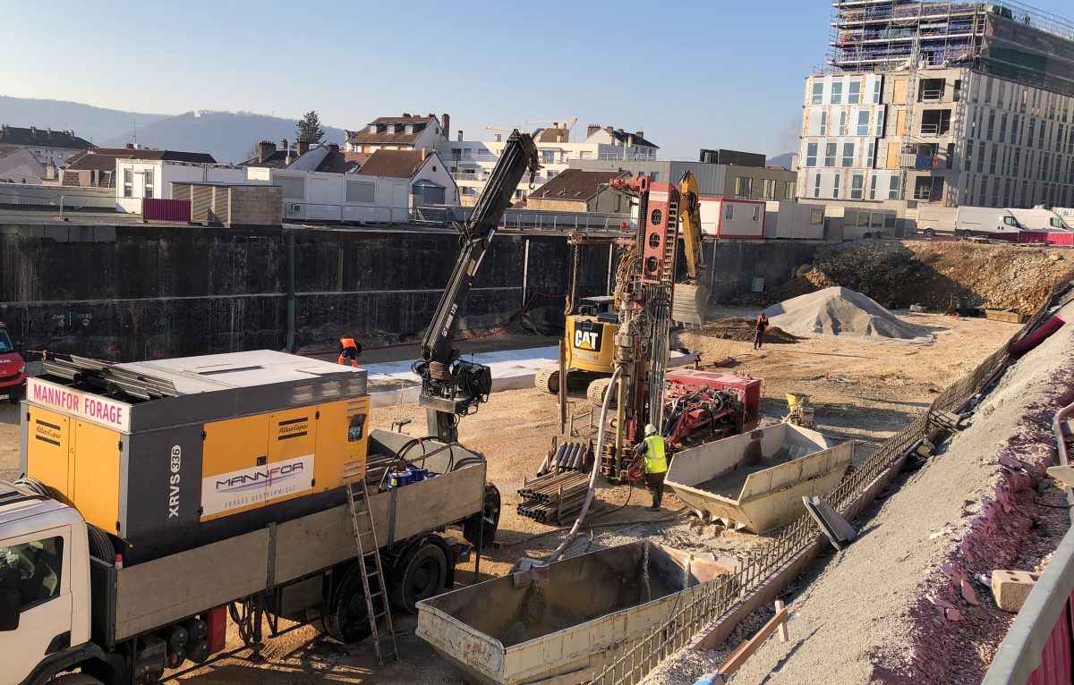 Les forages seront réalisés en trois temps pour s'adapter aux différentes phases de construction. "On peut forer 100 mètres en une journée ou 40 mètres selon la typologie du terrain si nous trouvons des calcaires, calcaires fracturés, du karst, de l'eau, de la marne, etc. Tout cela conditionne l'avancement des géothermies verticales. Ici, grâce aux études préliminaires, on avance plutôt bien…"