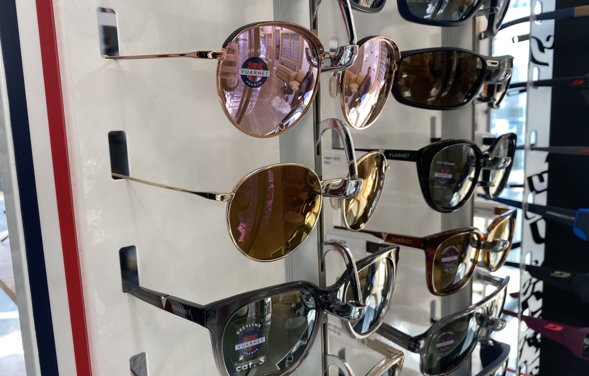 Plusieurs lunettes de vue sont fabriquées en France par des marques françaises, indique le gérant comme pour "Roussilhe", "Paragraphe", plusieurs lunettes de chez Morel par Jean Nouvel… Le magasin joue également la carte locale avec la marque jurassienne "Traction Production". Du côté des solaires, on retrouvera la marque française Vuarnet.