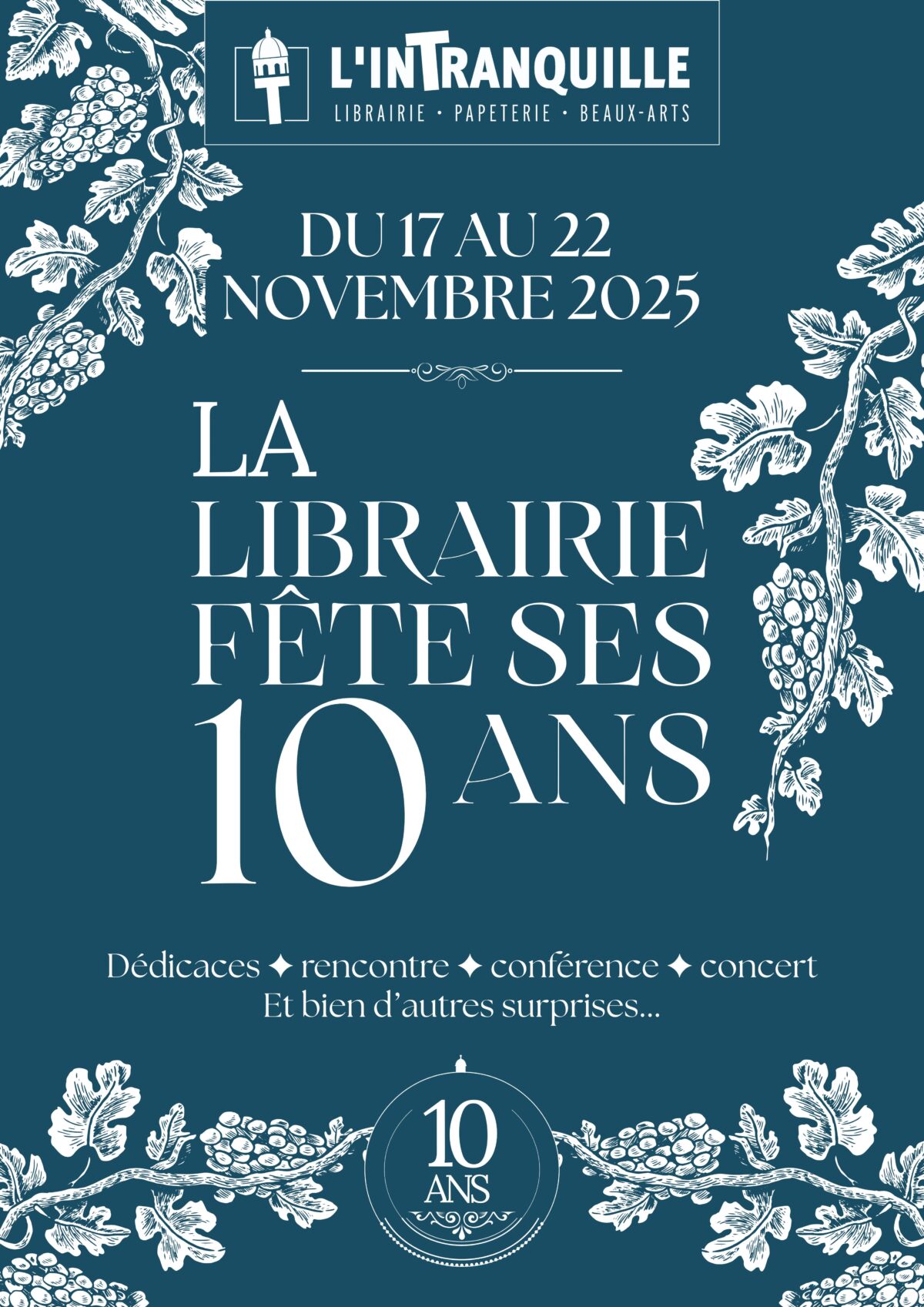 Pour son gérant Romain Mechiet, "le pari un peu fou est devenu une réalité". L’Intranquille s’apprête à fêter ses 10 ans d’événements, de rencontres et de culture partagée, dans son écrin qu’est l'église des Dames de Battant à Besançon. En une décennie, des auteurs venus de tous horizons, des dessinateurs légendaires, des chanteurs populaires, des peintres, des Prix Goncourt, jusqu’à des présidents et premiers ministres… "tous ont franchi les portes de la librairie, véritable carrefour culturel" précise le gérant dans son communiqué.