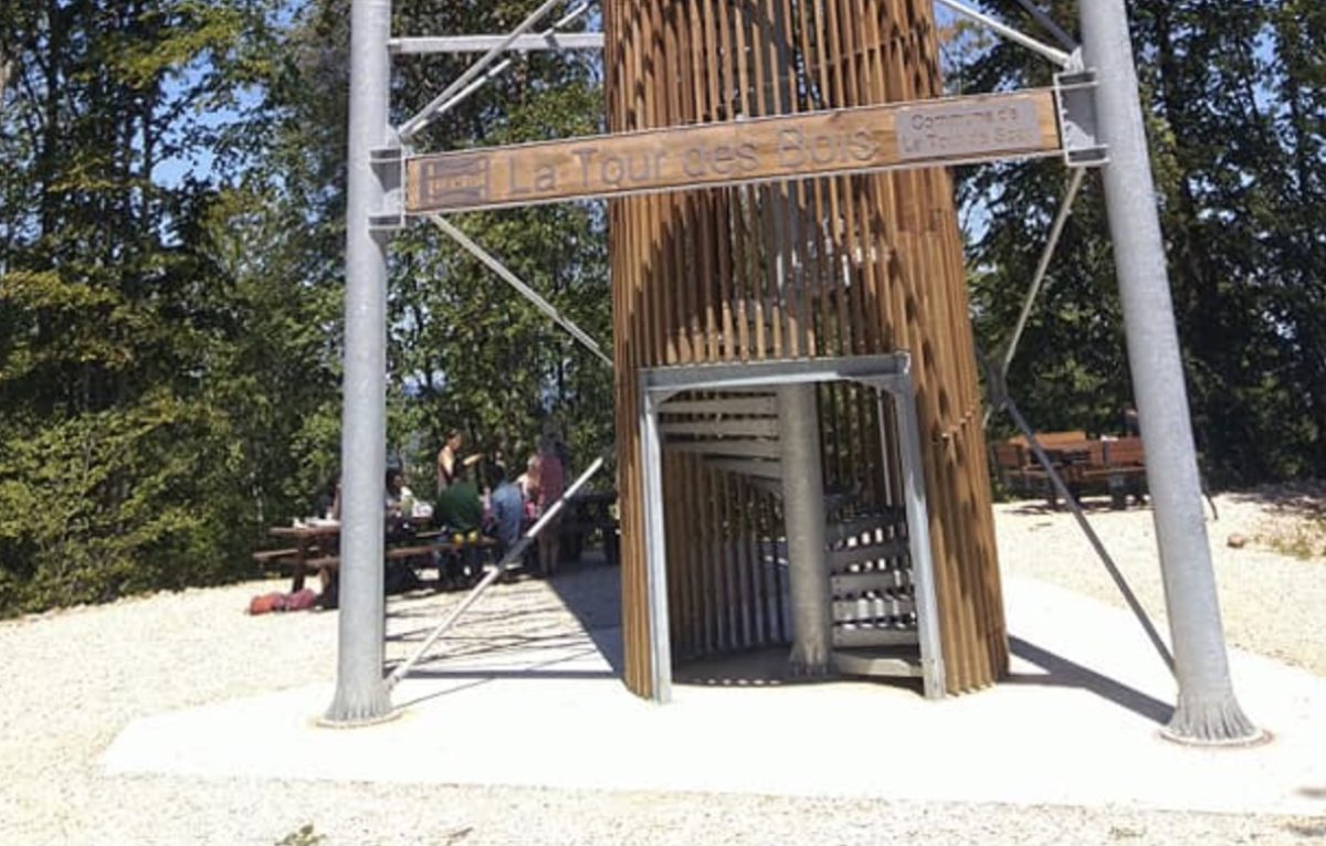 La Tour de Bois est une tour panoramique de 25 mètres de haut en structure métallique mais en garniture bois permettant d'avoir une vue imparable sur le panorama alentour… si l'on parvient à gravir les 140 marches qui séparent le plancher des vaches de la plateforme et du panorama !