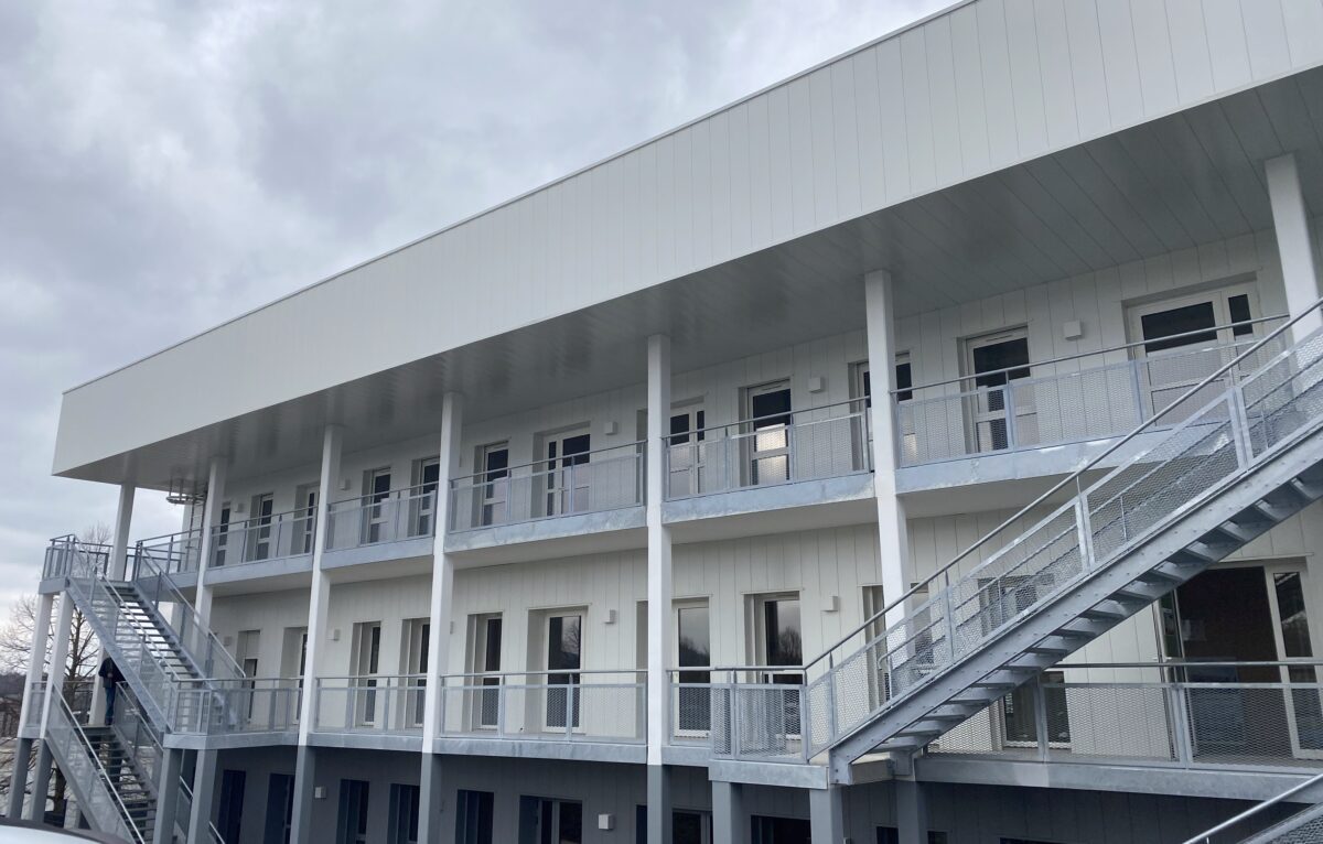 Les travaux ont permis une densification du bâtiment existant en créant un étage supplémentaire le faisant passer de 900 à 1300 m2 (soit un jour d’un tiers de la surface). Le tout a été supervisé par Emmanuel Gardin, du cabinet d’architecture Philippe Donze.