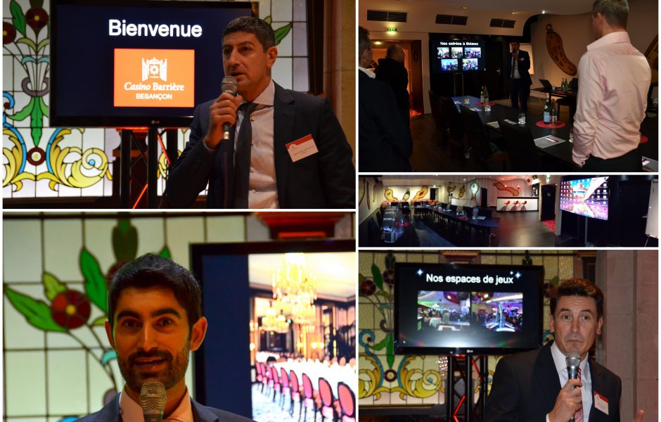 Le Casino Barrière de Besançon a invité une soixantaine de professionnels ce jeudi 20 novembre 2014. Autour des chocolats du Criollo ou des vins de la fruitière vinicole Arbois, plusieurs chefs d'entreprises venus de Franche-Comté, mais aussi de Suisse ont découvert la nouvelle salle polyvalente de congrès et de séminaire située à l'étage. "Nous avons descendu les tables de jeu au rez-de-chaussée et avons réorganisé l'espace jeu du rez-de chaussée dans le cadre d'une nouvelle stratégie commerciale" indique Amine Tadlaoui Ouafi, le directeur du Casino Barrière de Besançon. "On s'oriente vers une cible rajeunie, mais aussi une clientèle d'entreprise et de professionnels. Cette salle d'une centaine de mètres carrés offre les dernières technologies. Elle est totalement modulable et peut passer en quelques minutes d'une salle de réunion à une discothèque privée… "