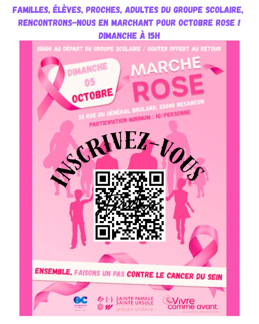 Le Groupe scolaire Sainte-Famille Sainte-Ursule organise le dimanche 5 octobre 2025 une marche rose au départ de l'établissement dans le cadre d'Octobre rose.