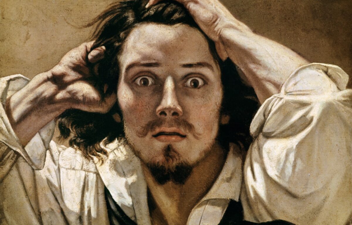 Alors jeune peintre venu de l’est de la France (Ornans), chercher le succès à Paris, Courbet s’y représente les traits défigurés par l’effroi, la peur ou la folie, se tenant la tête, les bras et le visage pris dans un clair-obscur bluffant. "C’est vraiment une démonstration de maîtrise picturale", commente M. Perrin.