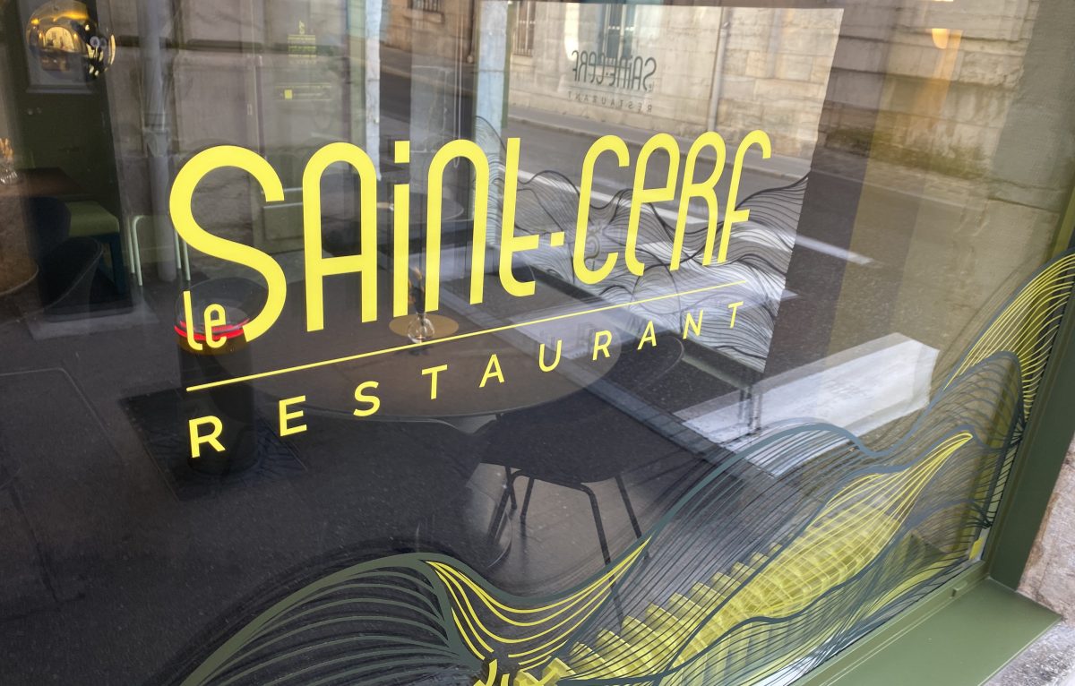 En seulement 3 mois, Leslie Cury, gérante de Square Concept ainsi que Jérémy et Émilie de l'entreprise Mu, ont dû concevoir un tout nouvel univers pour le Saint-Cerf, du sol au plafond en passant par le mobilier et la lumière. Xavier Choulet a donné carte blanche à ces deux entreprises de Besançon pour donner une nouvelle vie à son restaurant dont la réputation n’est plus à faire.