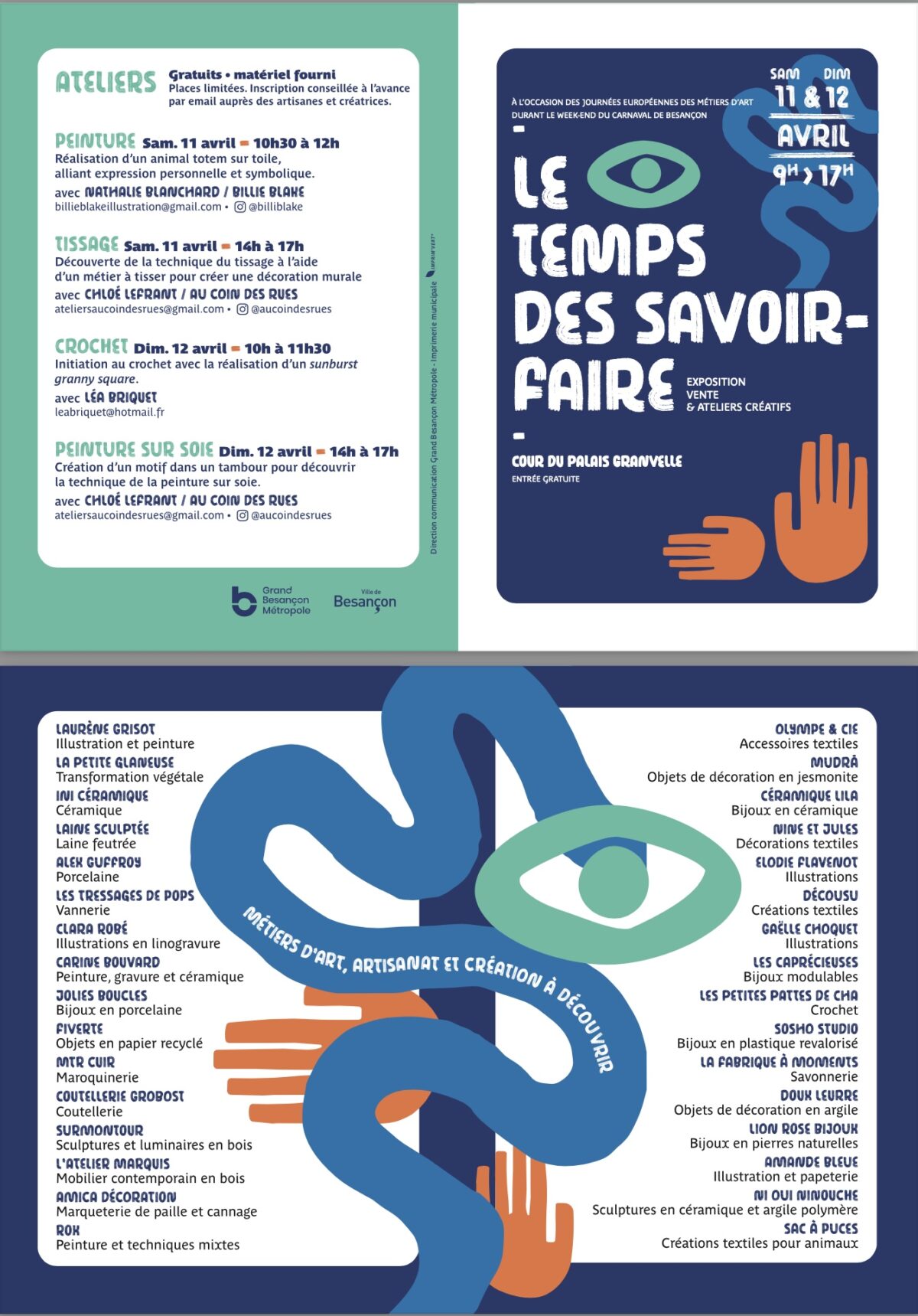 Porté par Chloé Lefrant, elle-même artiste, "Le temps des savoir-faire" bénéficie du soutien de Grand Besançon Métropole et de la Ville de Besançon. L’initiative entend proposer au grand public une approche renouvelée de l’artisanat d’art, en soulignant à la fois ses racines traditionnelles et ses dynamiques d’innovation.