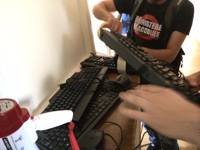 Une soixantaine d'intermittents se sont donc rendus dans les bureaux de la Direccte de Franche-Comté (Direction régionale des Entreprises, de la Concurrence, de la Consommation, du Travail et de l'Emploi) et ont confisqué dans le calme les claviers et les souris des employés avant de les remettre dans le bureau de Jean Ribeil, le directeur de la Direccte à Besançon qui a déclaré avoir appelé la Police.