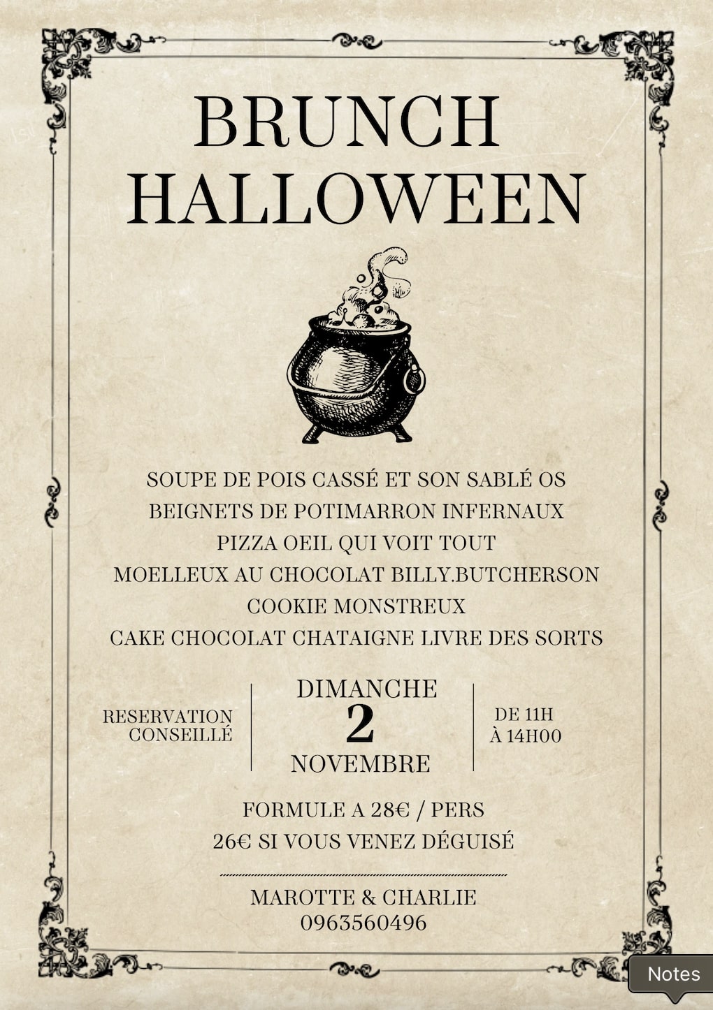 - Le lendemain, la saison prend fin le dimanche 2 novembre avec le traditionnel brunch d’Halloween et ses deux services (11h et 13h). Quelques places sont encore disponibles.