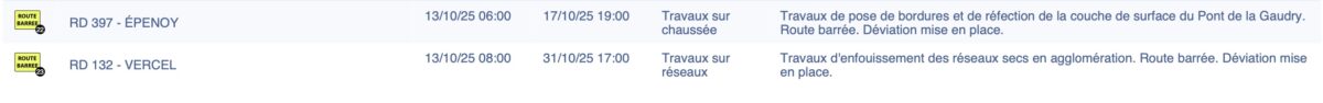 Voici les travaux qui se dérouleront du lundi 13 au vendredi 17 octobre 2025 sur les routes du département du Doubs.