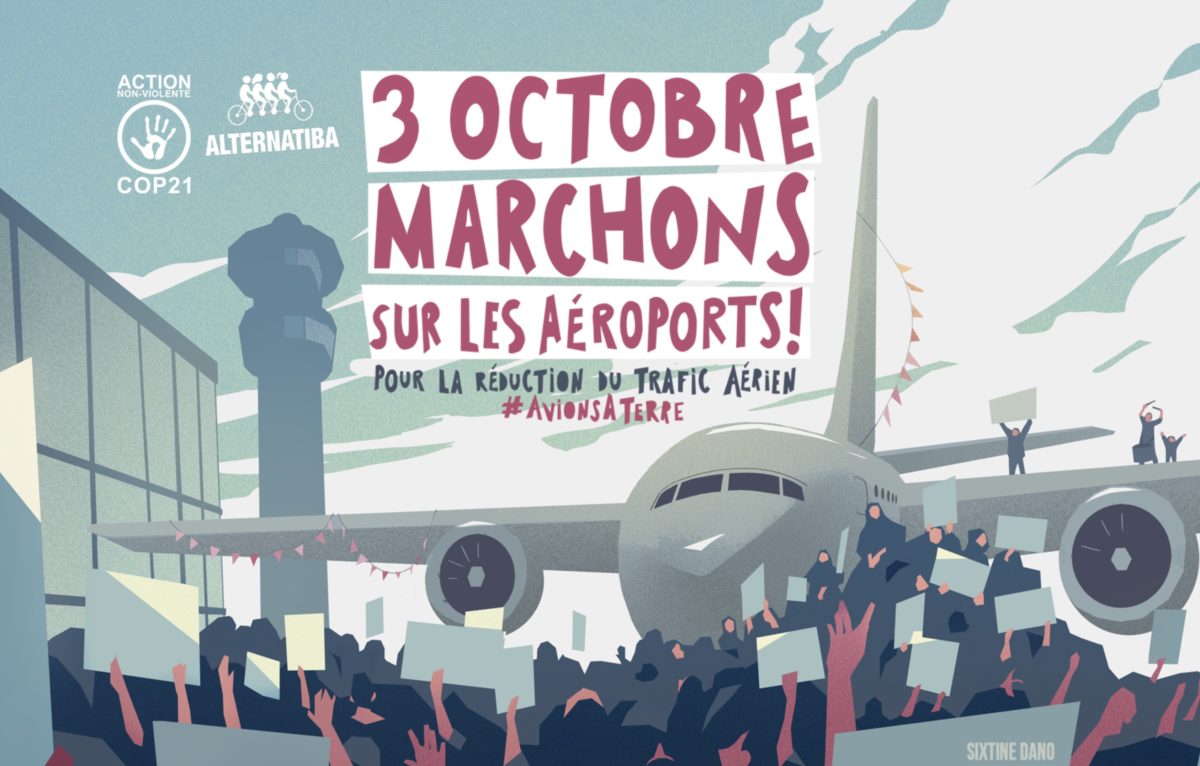 Or, notre gouvernement continue de soutenir massivement ce secteur. Alternatiba et ANV-COP21 appellent donc à faire entendre nos voix le samedi 3 octobre, partout en France, en marchant sur les aéroports !
