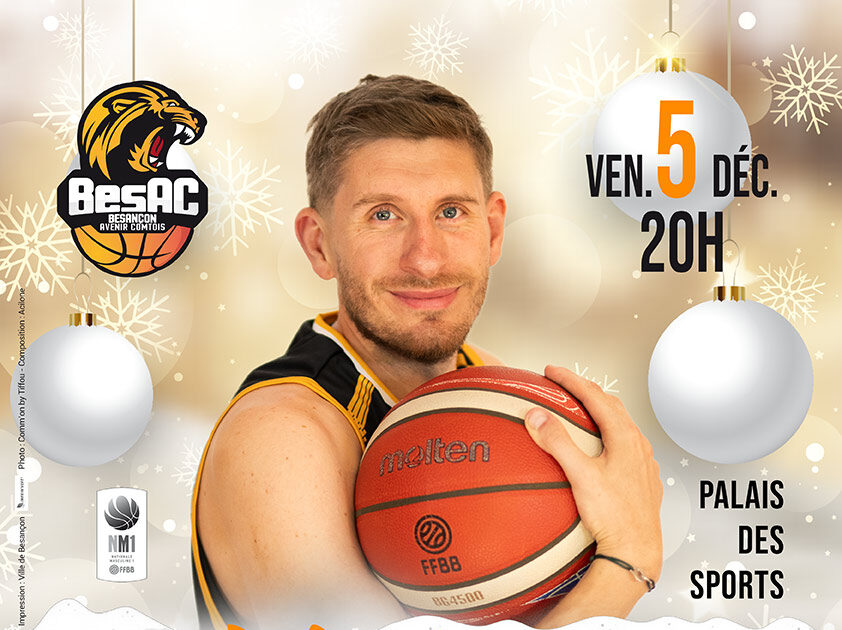 Le Palais des Sports de Besançon s’apprête à vibrer  vendredi 5 décembre 2025, à l’occasion d’un choc très attendu : le BesAC accueille Le Havre, actuel leader du championnat de Nationale 1. Et ce n'est pas tout : un marché de Noël et une grande tombola sont organisés, sans oublier la présence de Mickaël Gelabale et de Frédéric Weis.