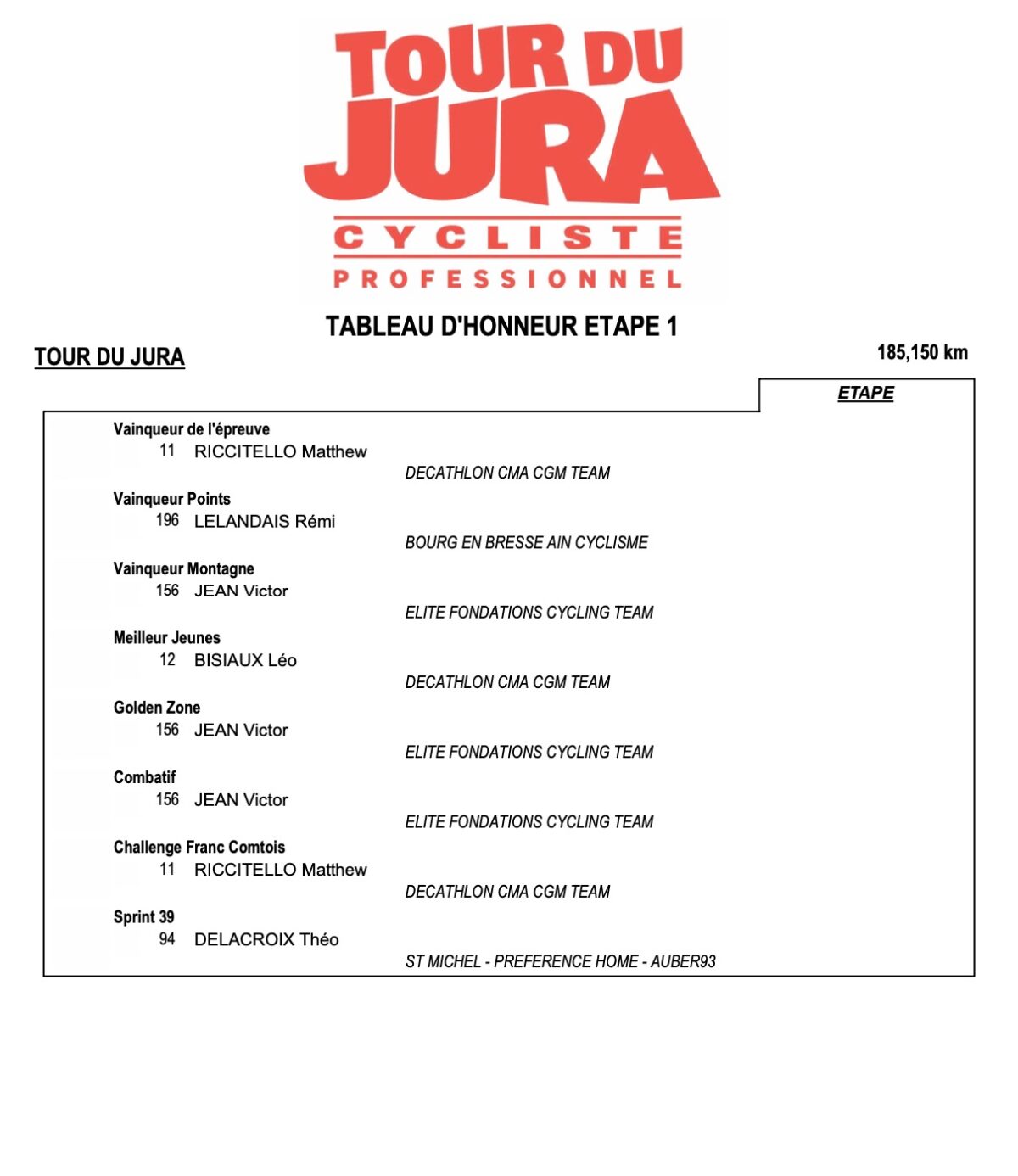 Zoom sur le tableau d’honneur du Tour du Jura