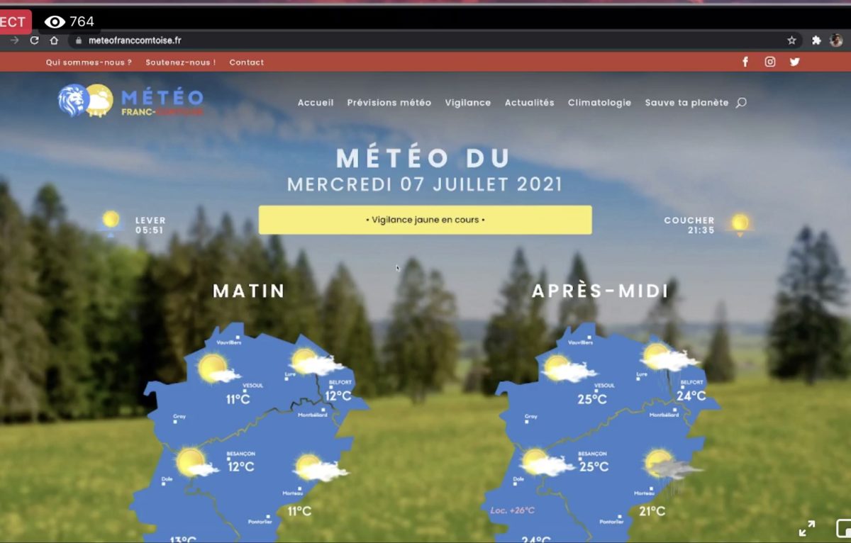 Vers 18 heures ce mercredi, le fondateur de la page a présenté en direct sur Facebook le tout premier site internet de Météo franc-comtoise, qui comme son nom l'indique est spécialement dédié aux phénomènes météorologiques de la région au quotidien. "C'est un plaisir de présenter la météo régionale qui est unique en Franche-Comté, c'est toujours avec le coeur et plaisir que l'on fait ça", a déclaré Ilyes Ghouil.