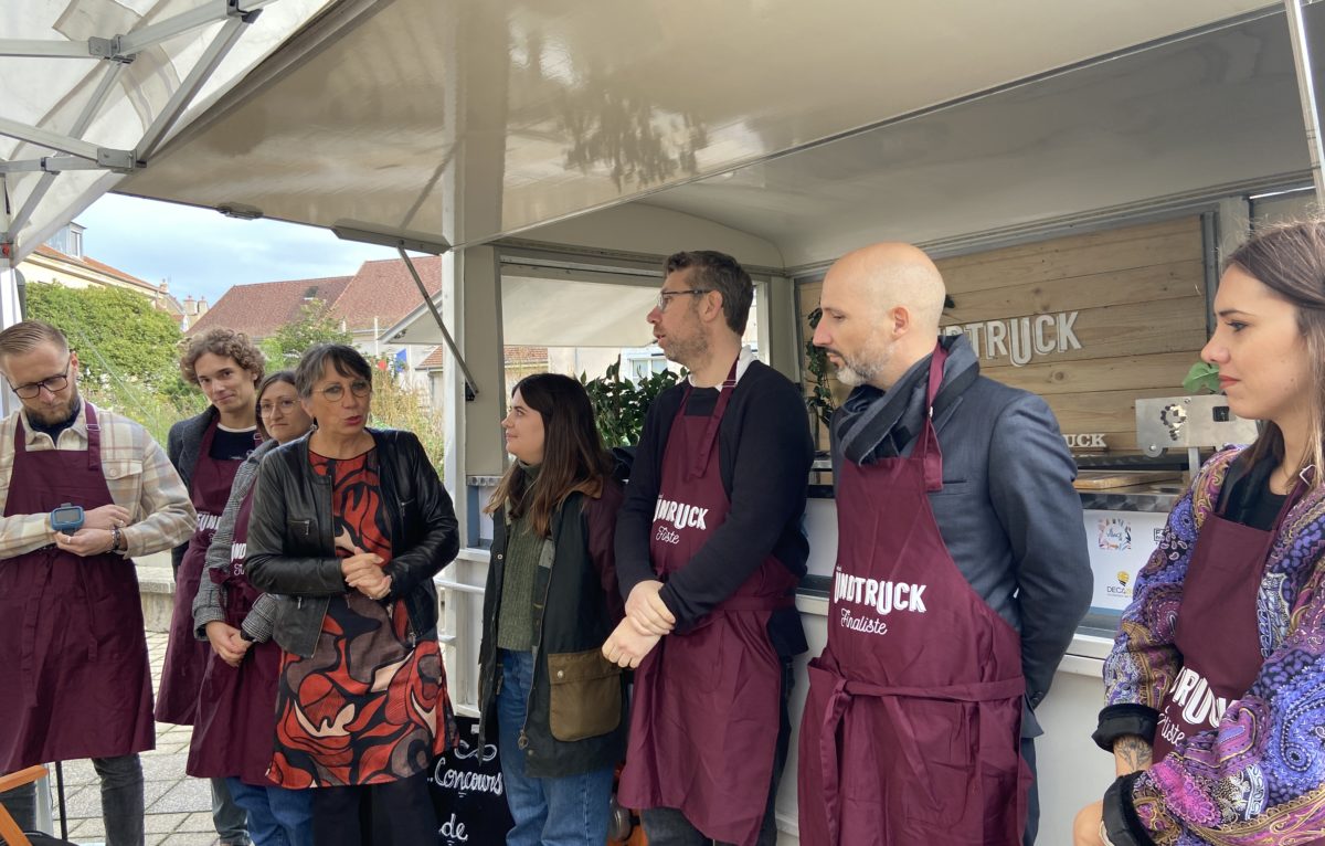 Pour sa première étape en Bourgogne-Franche-Comté, ils étaient six entrepreneurs à avoir tenté leur chance ce mercredi matin. Tablier autour des hanches, les cinq entrepreneurs en lice ont présenté en trois minutes chrono leur projet futur ou actuel devant plusieurs membres de l’écosystème entrepreneurial de la région. Le tout à bord d’un Fundtrcuk (un camion du financement) qui depuis 2015, sillonne chaque année les routes de France et de Belgique pour valoriser l’entrepreneuriat.