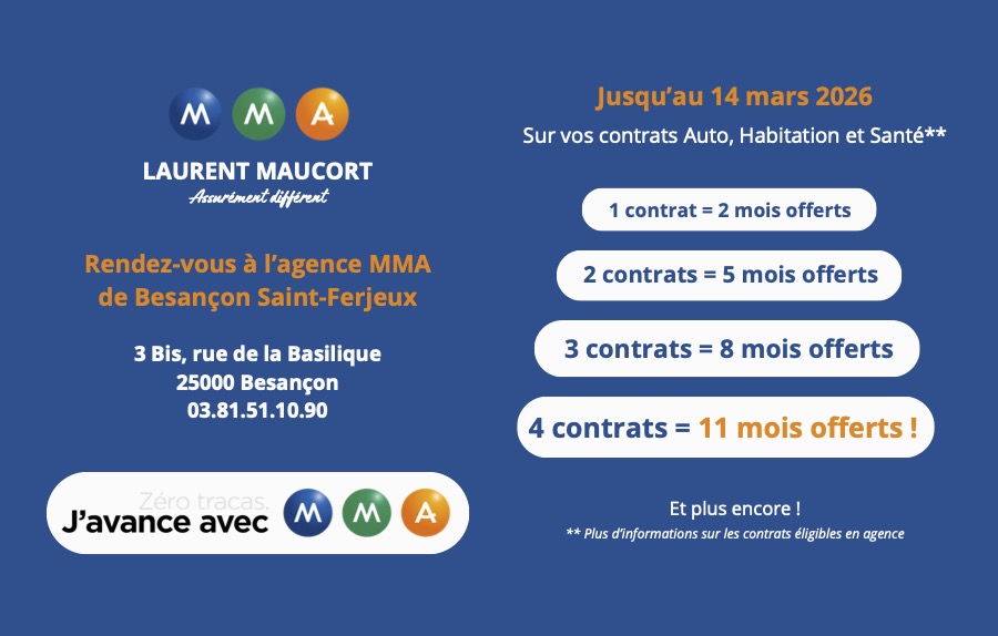 Depuis un an, l’agence MMA Saint-Ferjeux, l’une des trois agences du réseau MMA Maucort (Flore, Saint-Ferjeux, Saint-Vit), accueille ses clients au 3 bis rue de la Basilique, juste à côté de l’auto-école.