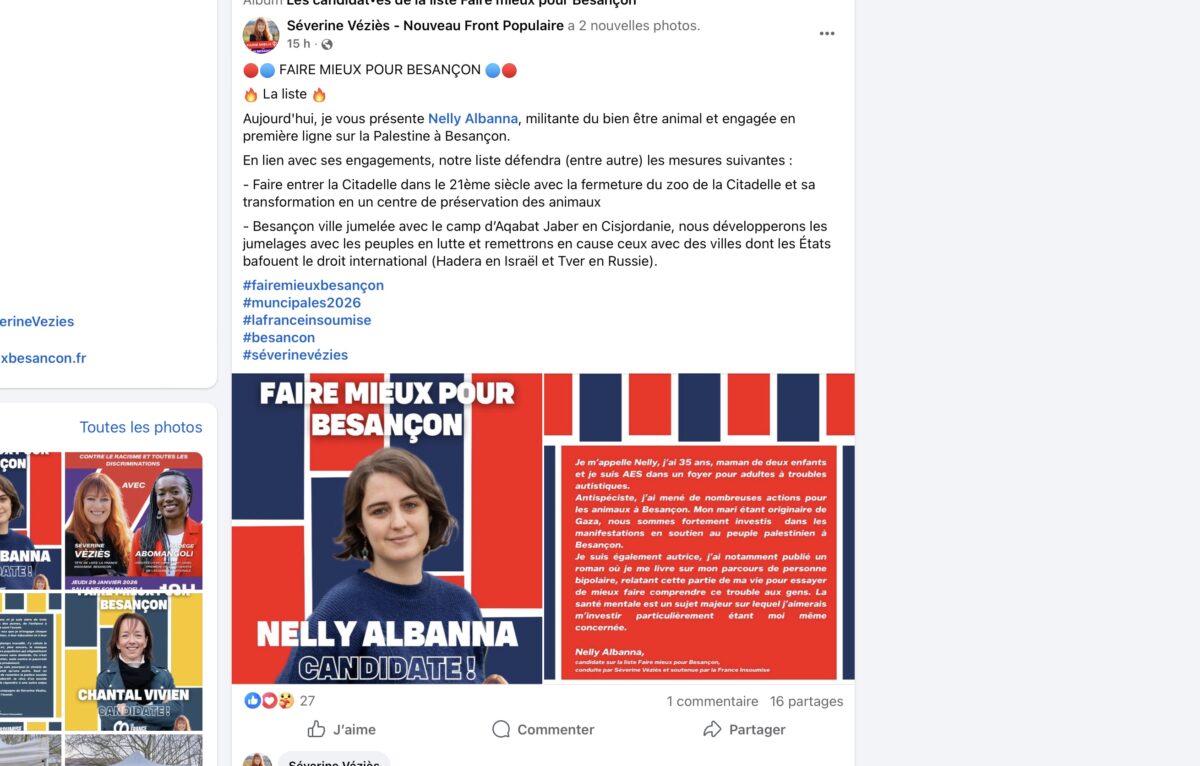 Le communiqué s’ouvre sur une formule qui donne le ton de la démarche : ”Un jour, une candidate”. Selon le communiqué, la liste a commencé, depuis plusieurs jours, à présenter sur ses réseaux sociaux les candidats et candidates qui la composeront. Cette présentation se fait via différents canaux numériques et concerne la liste ”Faire mieux pour Besançon”, conduite par Séverine Véziès.