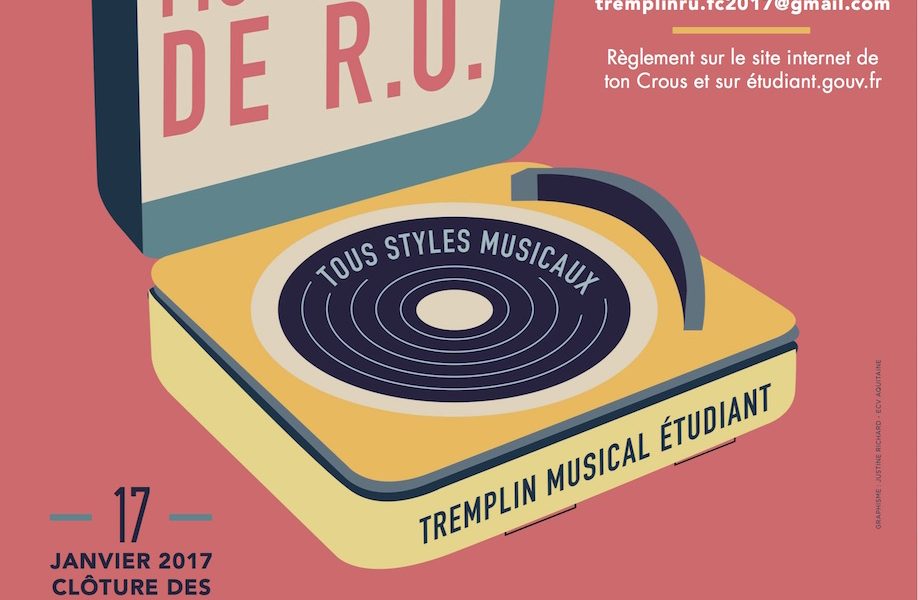 Télécharger le formulaire d’inscription sur www.crous-besancon.fr/culture/concours-etudiants. Renvoyer le formulaire dûment rempli, accompagné d’une maquette, à tremplinru.fc2017@gmail.com.