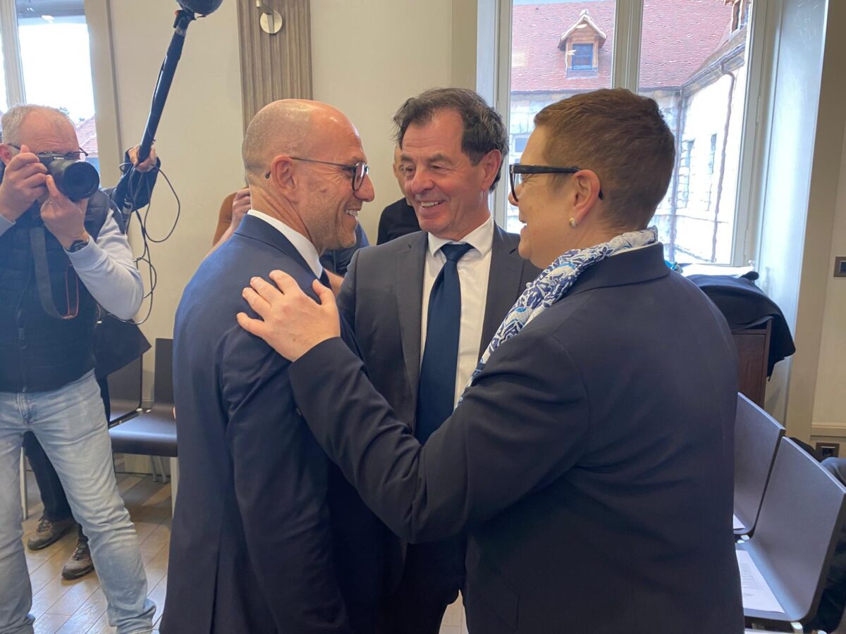 À son arrivée dans la salle du Conseil municipal, il a d’abord salué ses soutiens de toujours, Jacques Grosperrin, sénateur du Doubs et Christine Bouquin, la présidente du Département du Doubs.