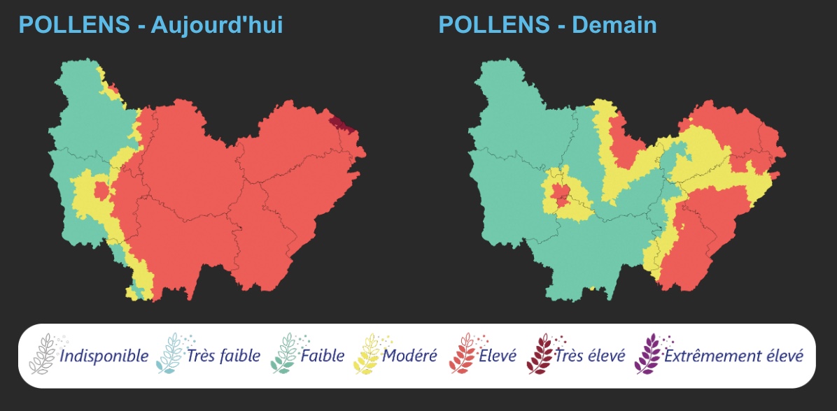 Par ailleurs, les pollens de charme, frêne restent présents, maintenant un niveau global de pollinisation significatif dans la région.