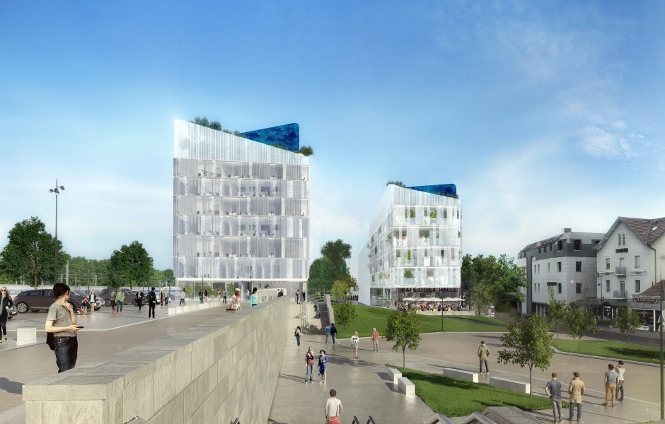 L’entreprise Eiffage Construction est depuis le 8 février 2018 détenteur du marché de réalisation du pôle qui comprend deux bâtiments. Grâce à leur hauteur de 5 et 8 étages, ces deux bâtiments joueront le rôle de signal du pôle administratif de la Gare Viotte et de symbole de la transformation du quartier.