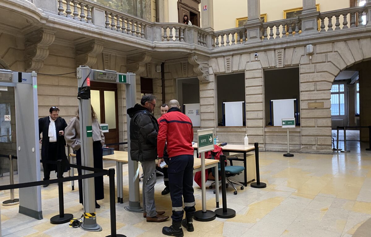 Arrivé en chemise bleue nuit, Frédéric Péchier s’est rendu dans la salle du tribunal accompagné de ses deux filles et son avocat Me Schwerdorffer.