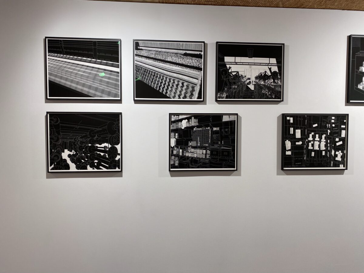 Enfin, la carte blanche donnée à Capture Editions amène le visiteur dans un univers qui lui est propre. De nombreux cadres en noir et blanc tapissent les murs. "Ces dessins ont été réalisés dans le cadre d’une recherche dans le domaine du textile, à partir de relevés photographiques effectués dans des usines et des ateliers", nous explique le Frac Franche-Comté.