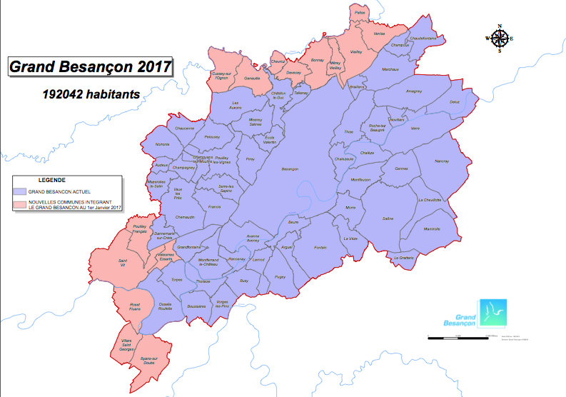 Le Préfet du Doubs a, par arrêté préfectoral du 22 septembre 2016 a prononcé l'extension du périmètre de la communauté d'agglomération du Grand Besançon (CAGB) au territoire de ces 15 communes :