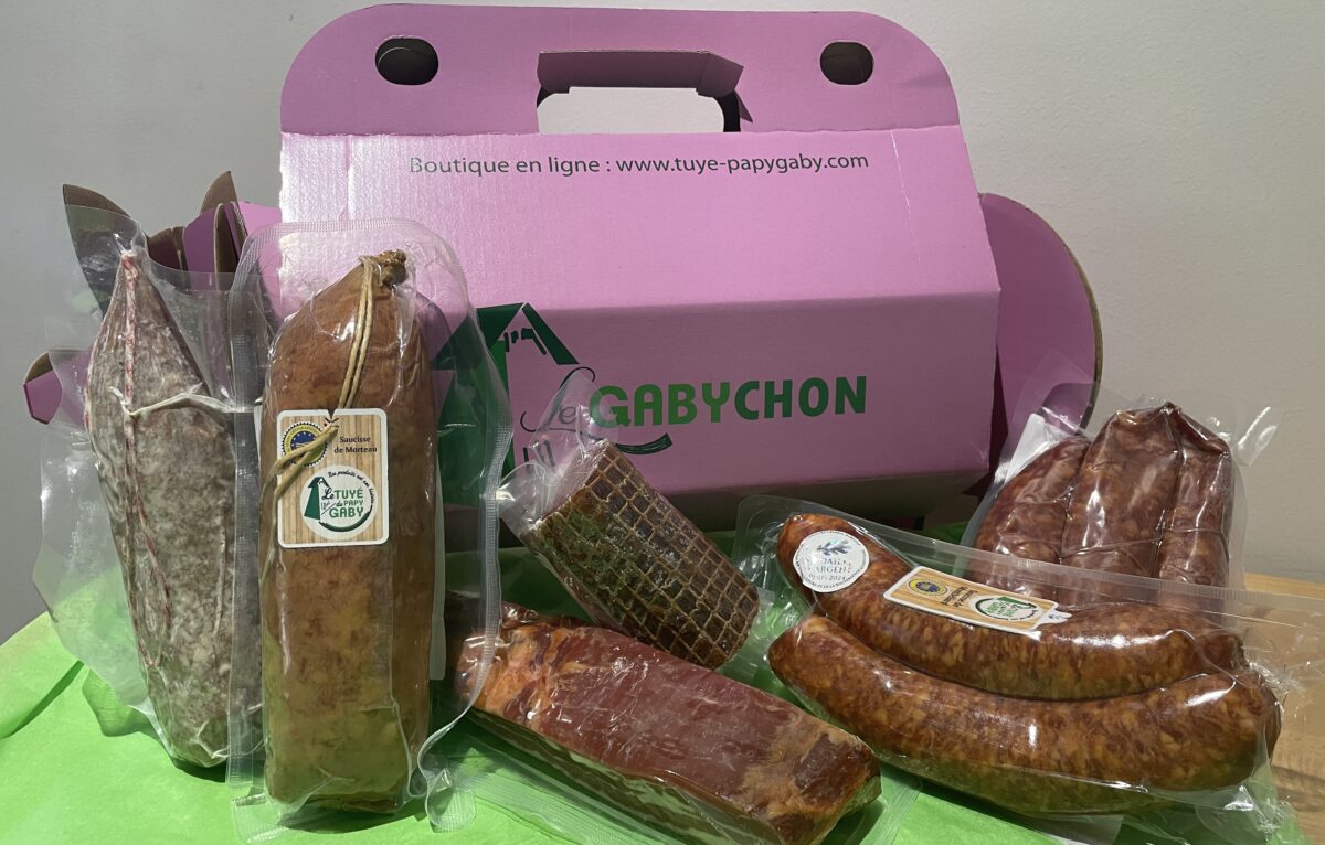 Le Gabychon, c’est une boite cartonnée souvenir en forme de cochon dans laquelle on trouve :