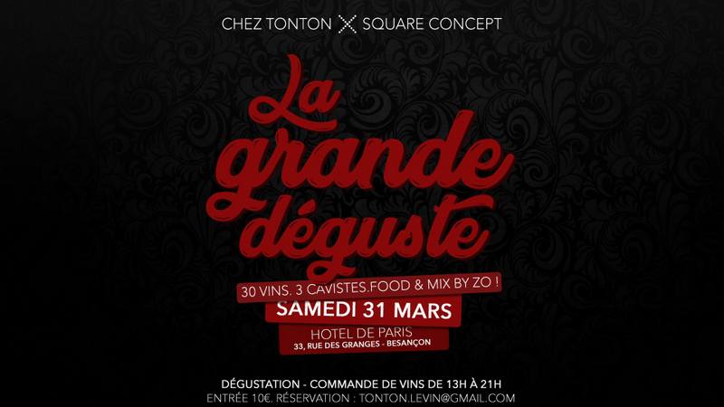 De 13 heures à 21 heures, La Grande Déguste se déroulera dans la salle du petit déjeuner de l'hôtel de Paris à Besançon. Au programme : la découverte de trois cavistes, 30 vins en dégustation, un buffet, tout cela accompagné des mix de ZO dans un univers dont seule Leslie Cury a le secret…