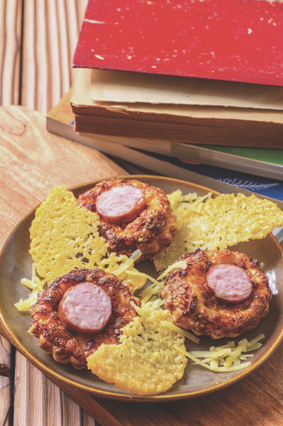 Tartelette saucisse de Montbéliard & Comté avec une tuile croquante au Comté